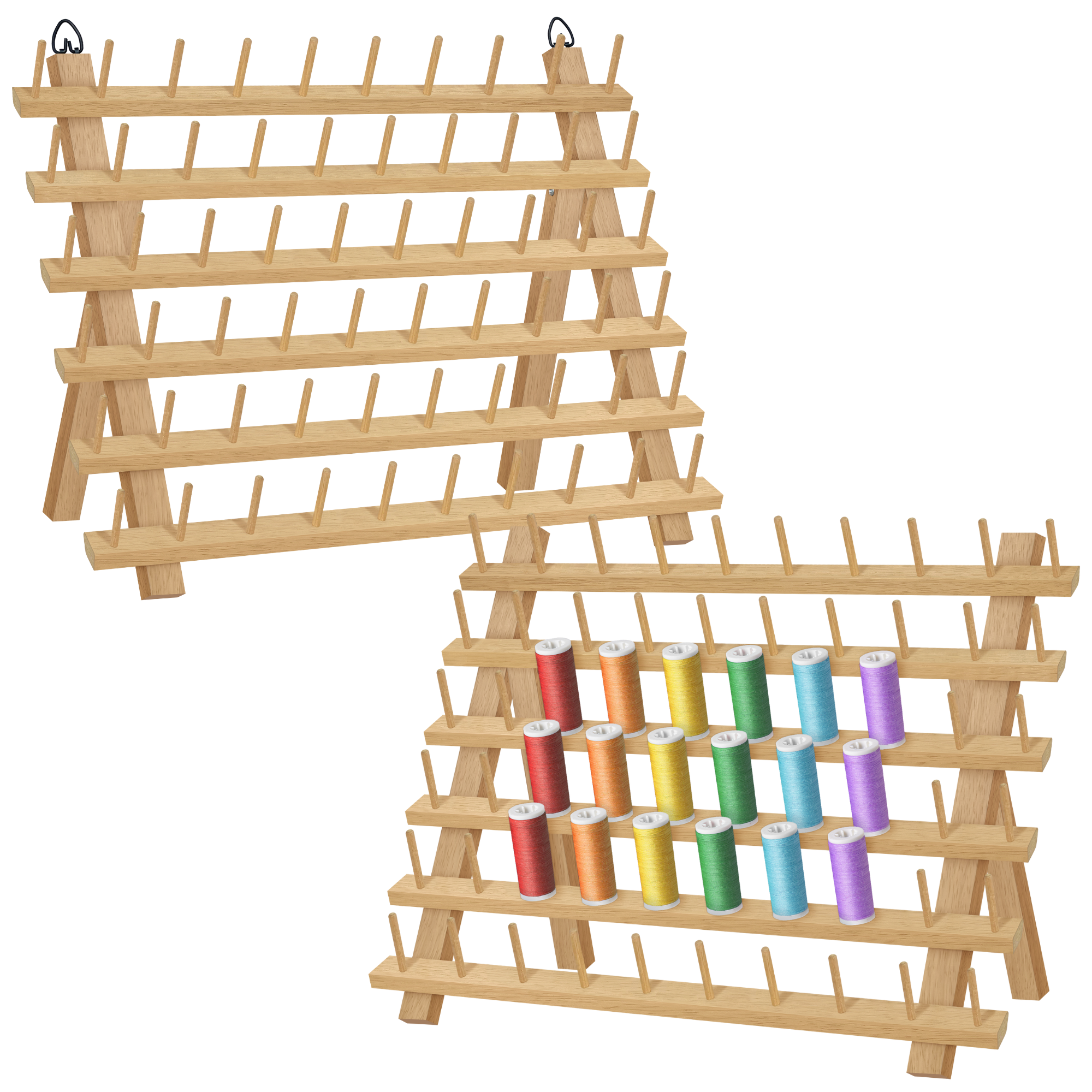 - Freestanding or Wall Mountable for Flexible Use: The thread rack is designed with foldable legs so it can stand upright on a desk or table. It also includes two built in hooks on the back, allowing you to easily mount it on a wall to save space. (Please note: mounting nails or screws are not included.)